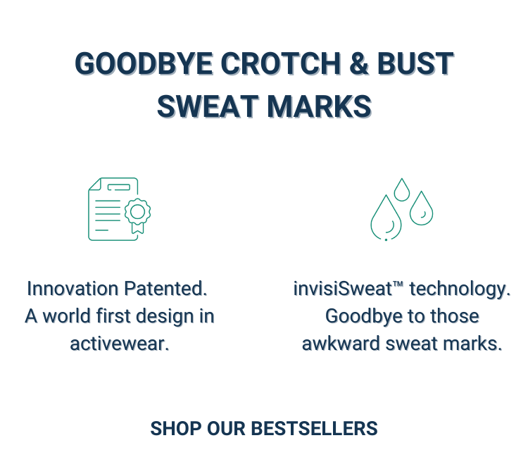 Our Australian Innovation Patented invisiSweat has your back, even at your sweatiest moments. An invisible bamboo lining within your activewear absorbs sweat, minimising visible crotch and bust sweat.